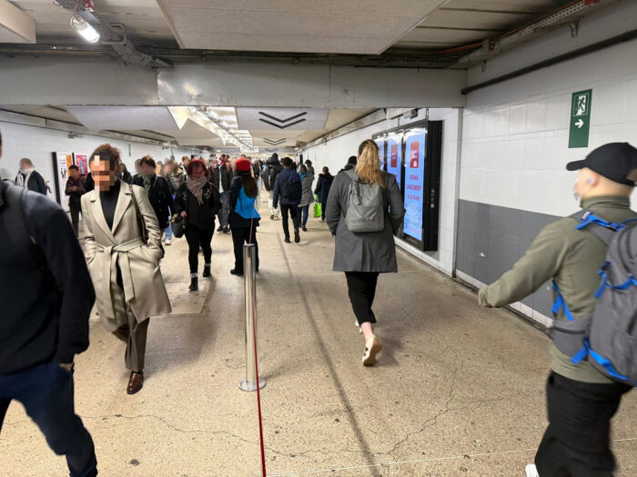 Ce mardi 17 mars, nous avons donc lancé un test de gère-files en gare de La Défense. Ce type de dispositif n’est pas nouveau. En effet, il avait déjà été mis en place lors des Jeux Olympiques et de la période Covid pour garantir la sécurité et la sûreté de tous. Aujourd’hui, nous explorons comment l’adapter à votre quotidien. Il ne s’agit là que de l’une des pistes actuellement en cours d’expérimentation.